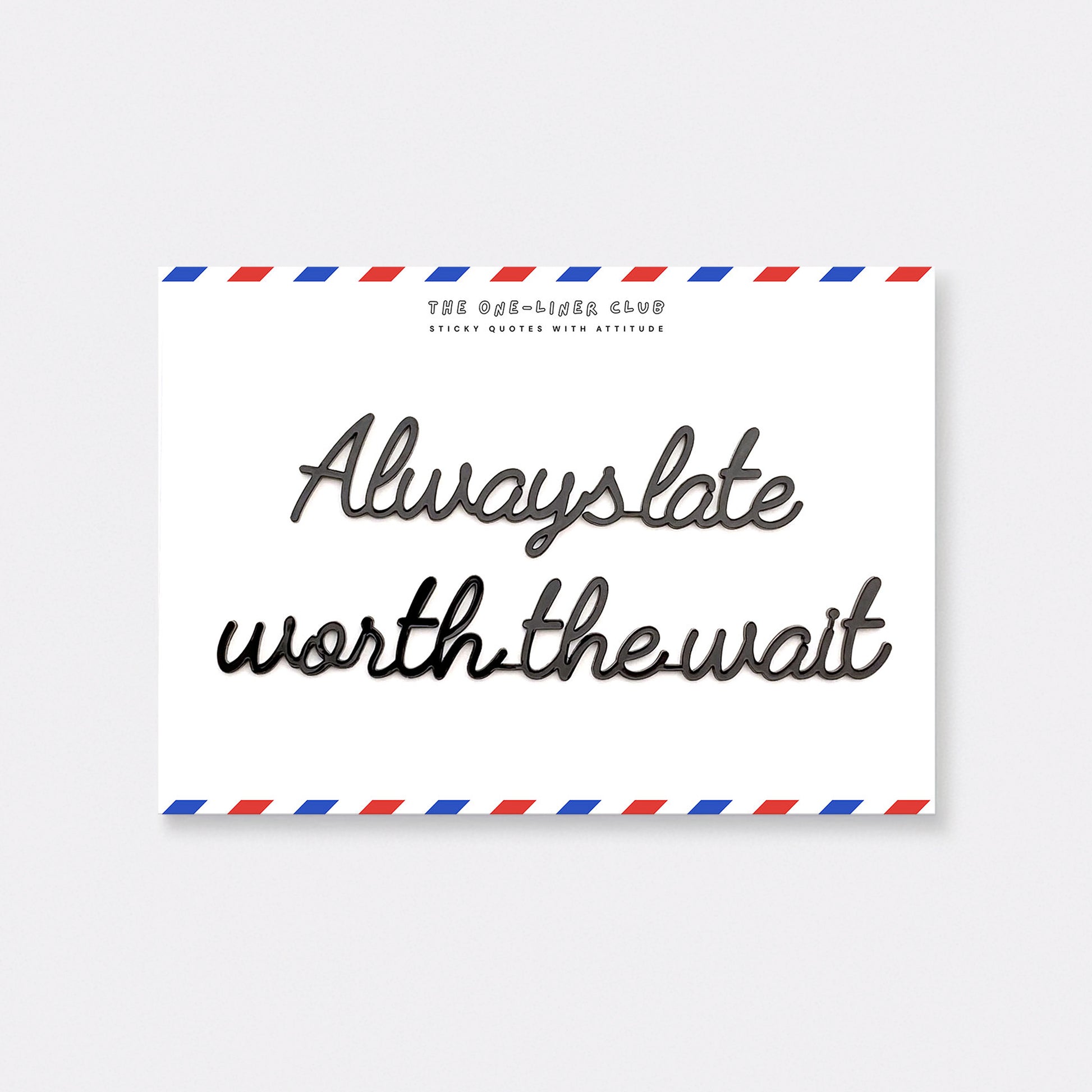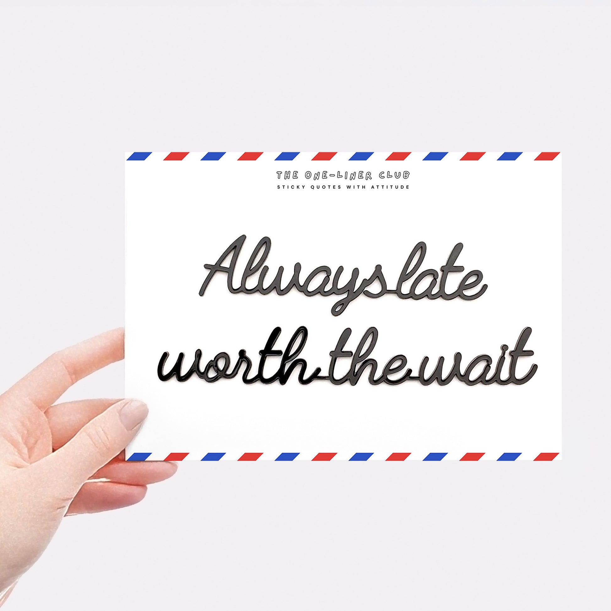 Our self-adhesive one-liners stick to almost any smooth, dust-free surface, from walls to cupboards to mirrors, you name it. Each quote comes 'ready-to-stick' on an A5 card, with the adhesive already applied.