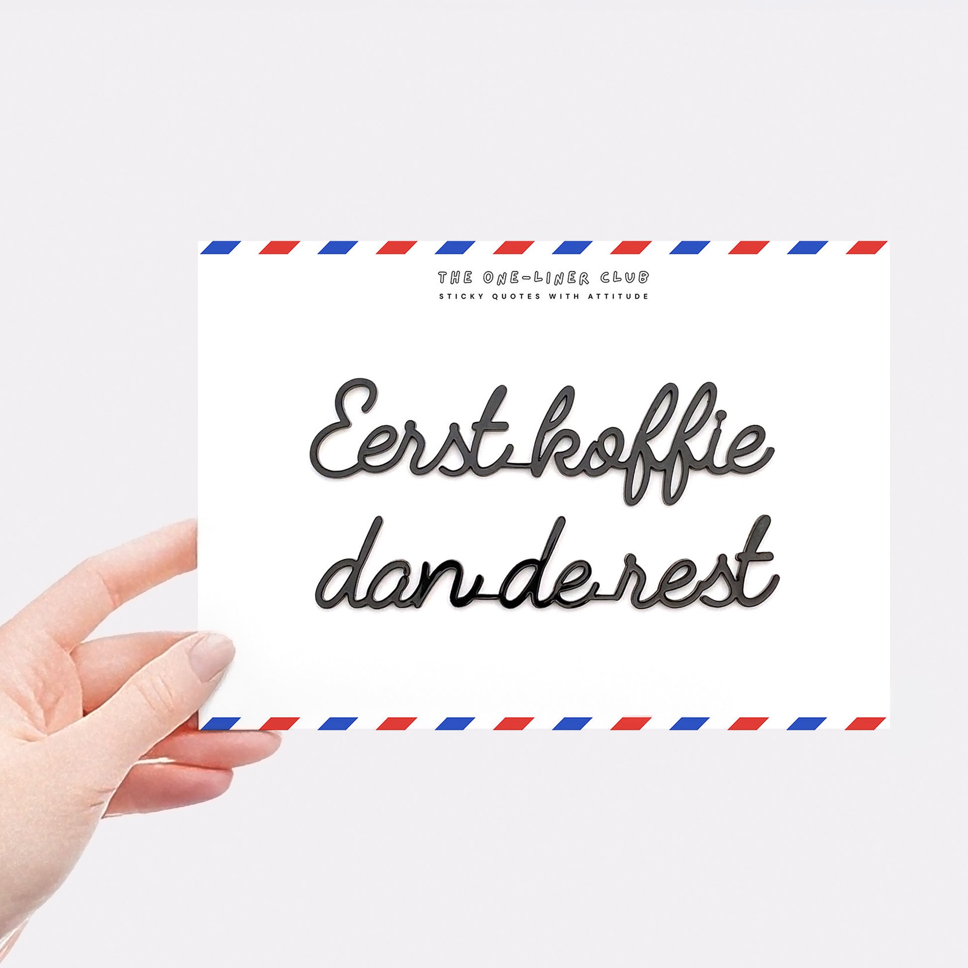 Our self-adhesive one-liners stick to almost any smooth, dust-free surface, from walls to cupboards to mirrors, you name it. Each quote comes 'ready-to-stick' on an A5 card, with the adhesive already applied.