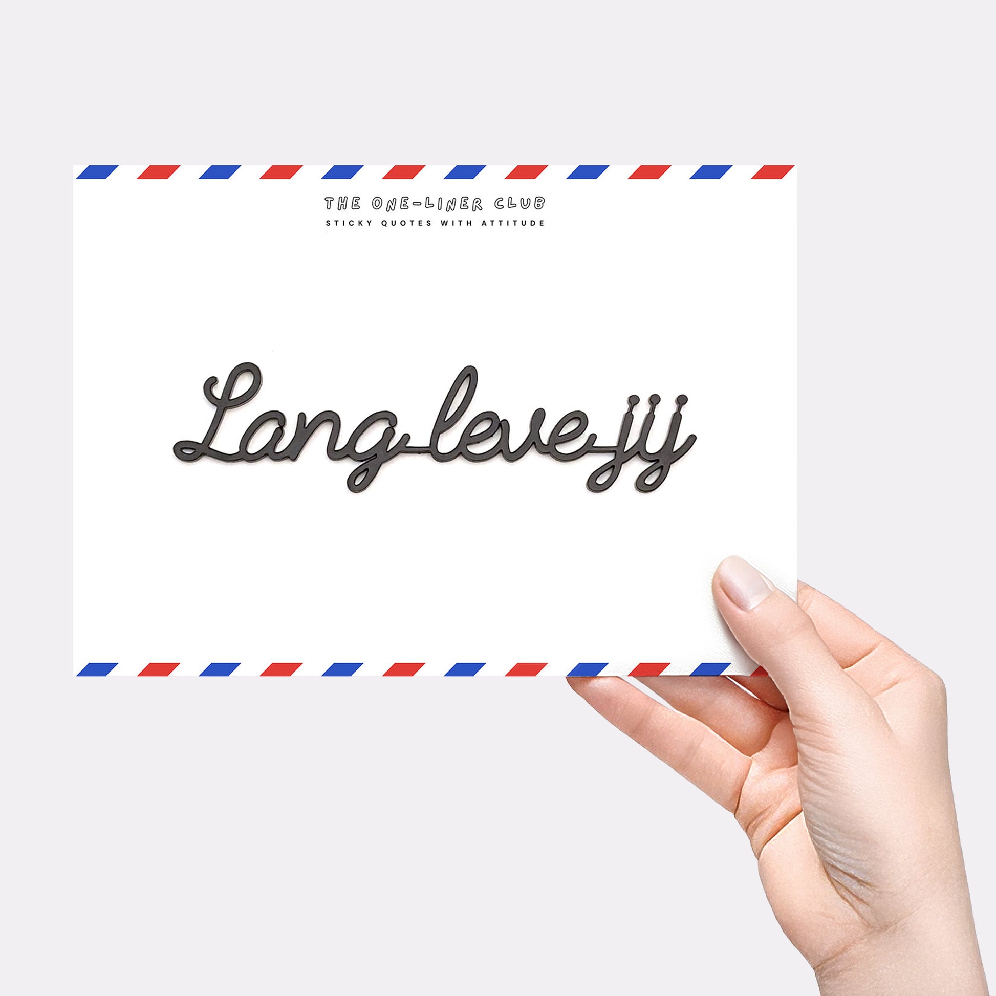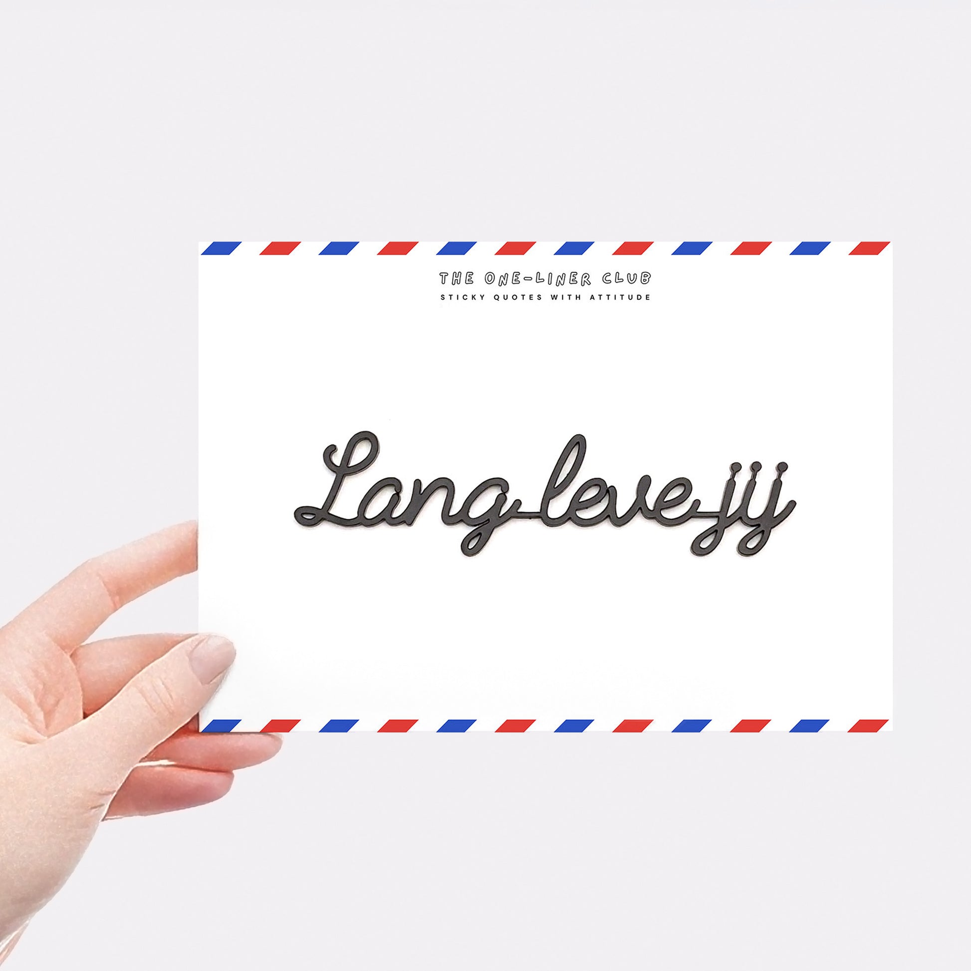 Our self-adhesive one-liners stick to almost any smooth, dust-free surface, from walls to cupboards to mirrors, you name it. Each quote comes 'ready-to-stick' on an A5 card, with the adhesive already applied.