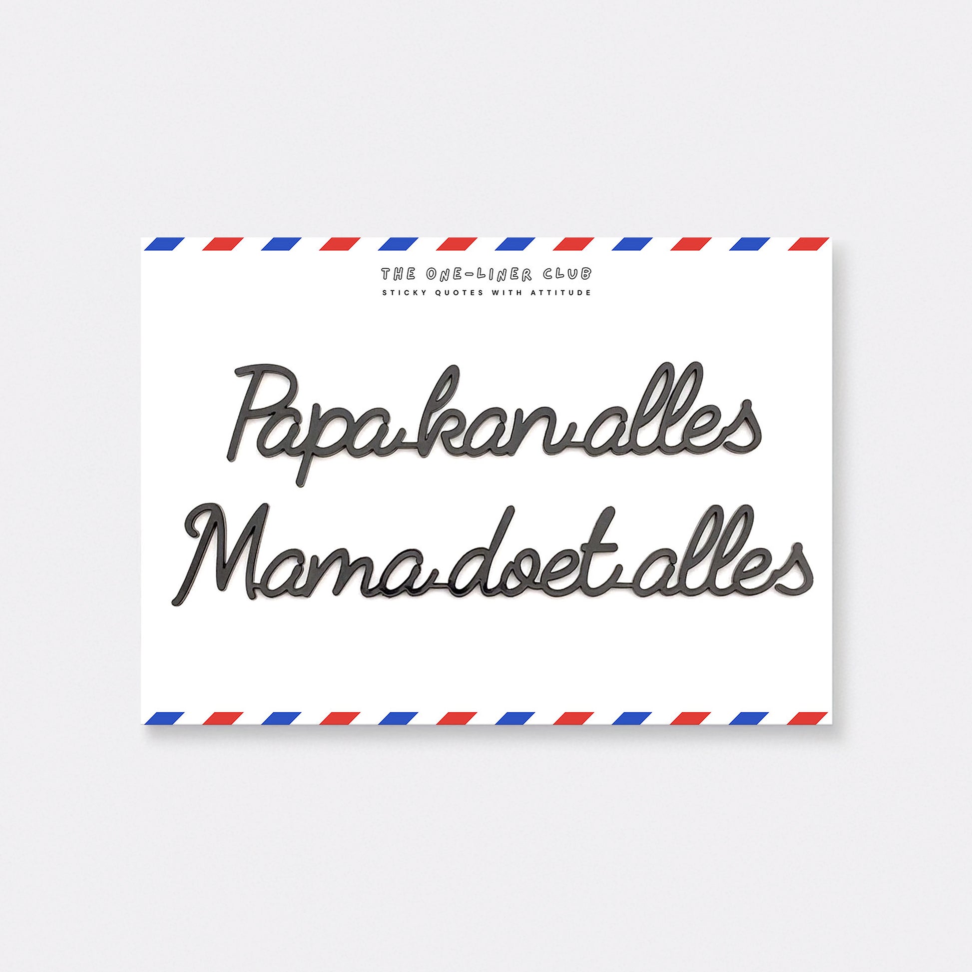 Our self-adhesive one-liners stick to almost any smooth, dust-free surface, from walls to cupboards to mirrors, you name it. Each quote comes 'ready-to-stick' on an A5 card, with the adhesive already applied.