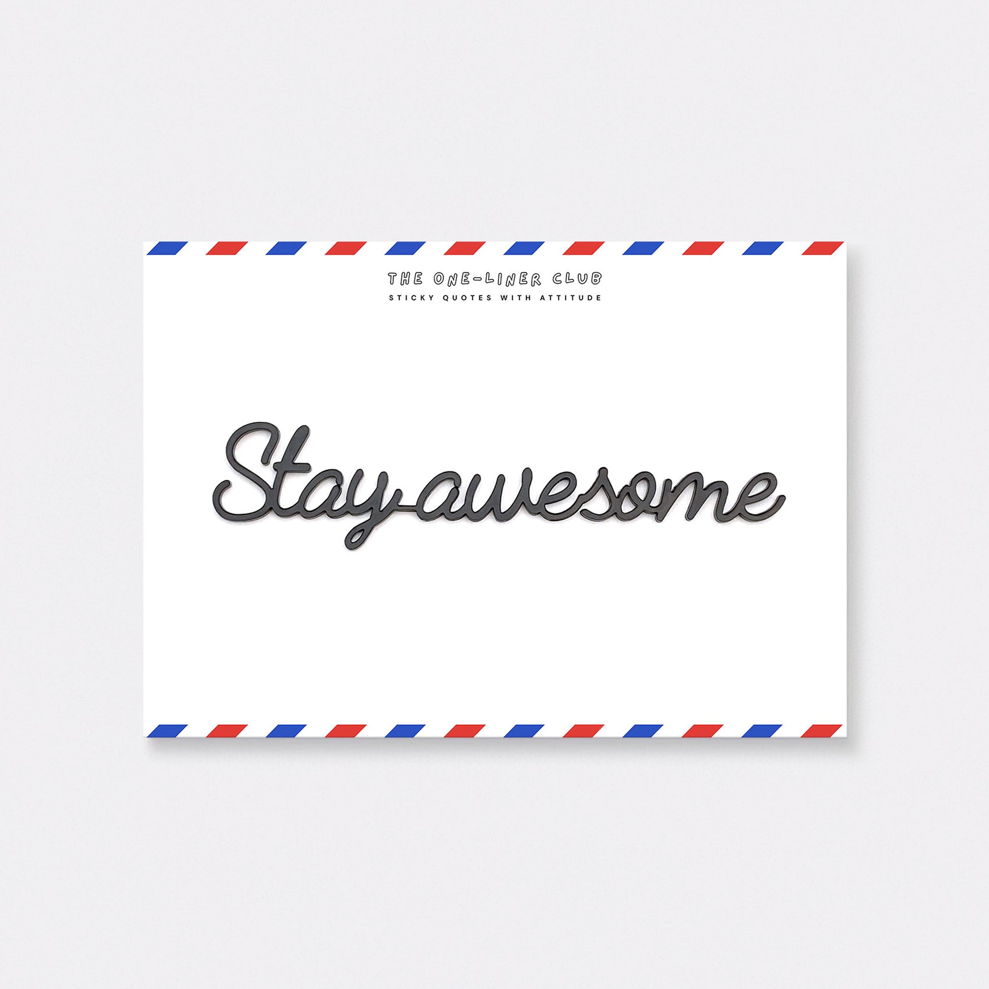 Our self-adhesive one-liners stick to almost any smooth, dust-free surface, from walls to cupboards to mirrors, you name it. Each quote comes 'ready-to-stick' on an A5 card, with the adhesive already applied.